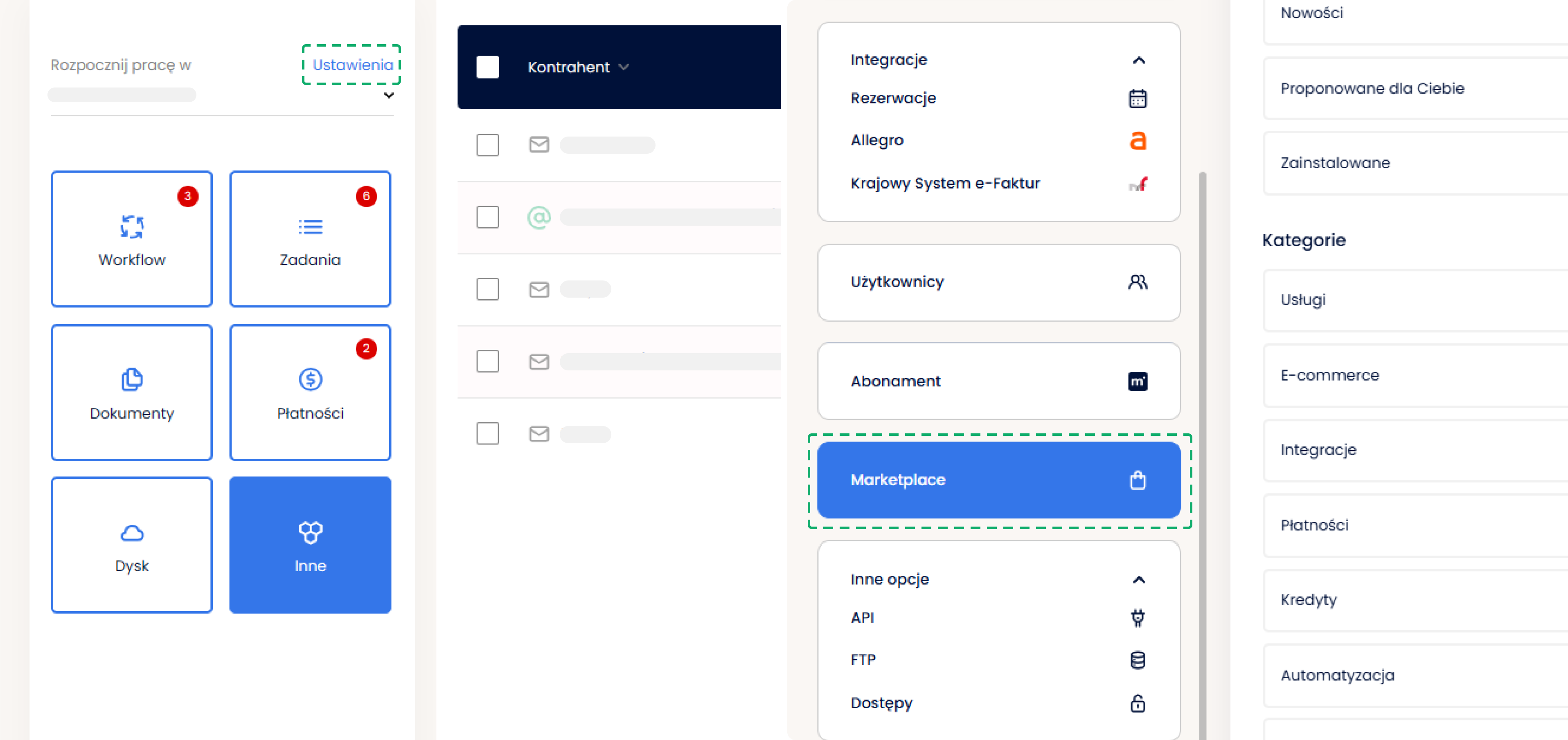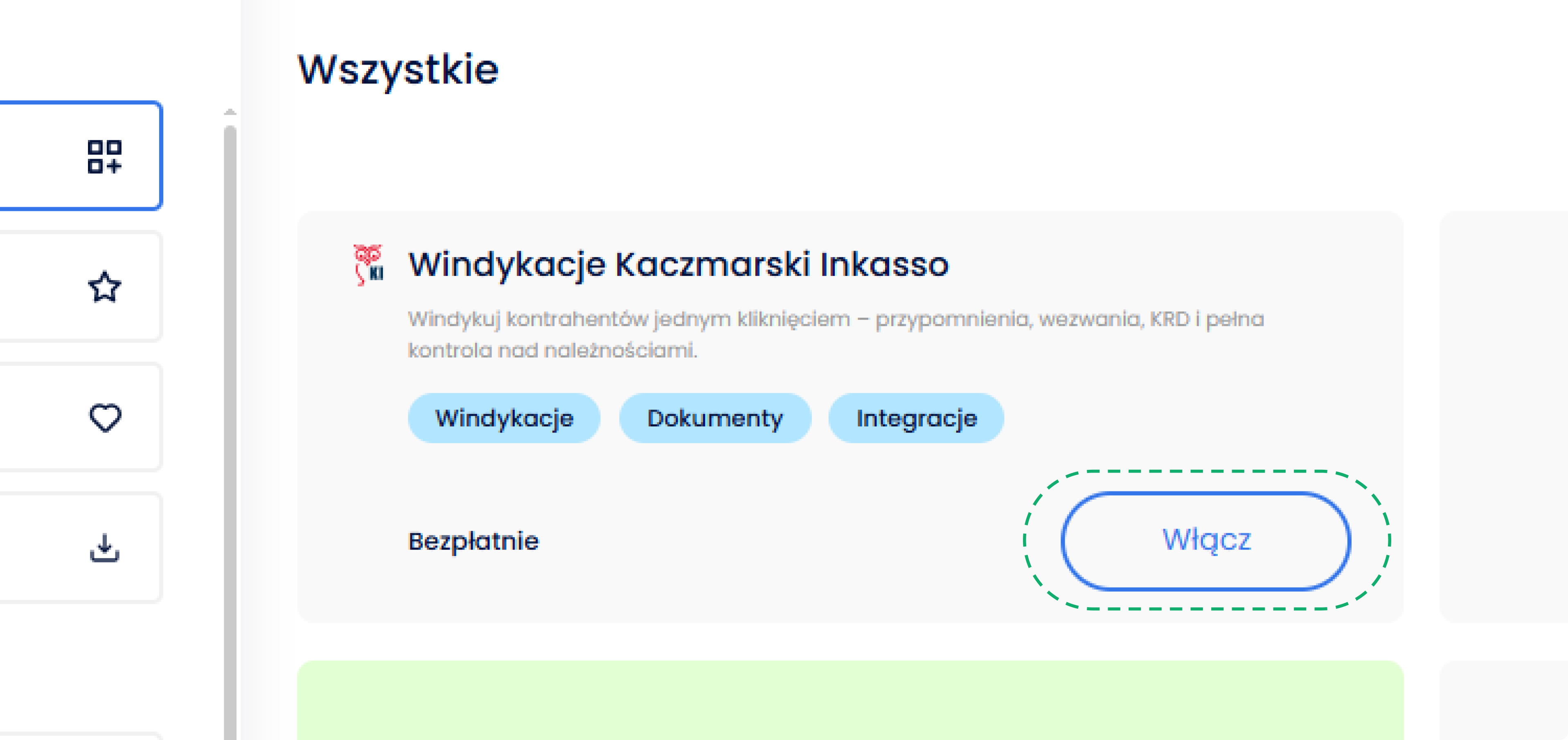 - Przejdź do sekcji Ustawienia → Marketplace → Windykacje Kaczmarski Inkasso.